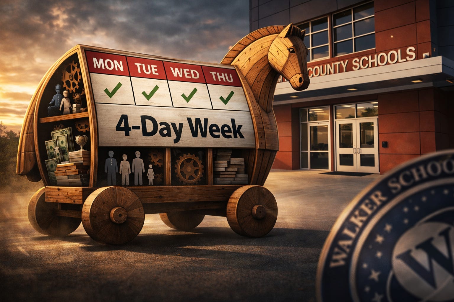 Walker County families deserve honest answers about what a four-day week would actually deliver: marginal savings, no improvement in teacher retention, declining student achievement, increased crime, and a whole lot of scrambling for Friday childcare. The research isn’t ambiguous. The promises don’t match reality.
